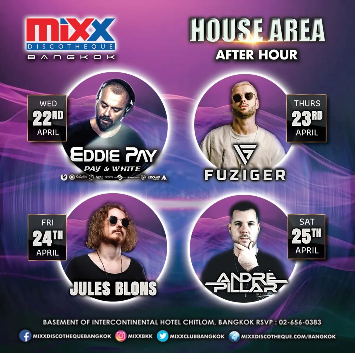 Mixx Discotheque located in Ratchaprasong area of Bangkok in the basement of the Intercontinental Hotel and adjacent to Gaysorn Plaza. Mixx is another of Bangkok's late night venues and has two large club sections.