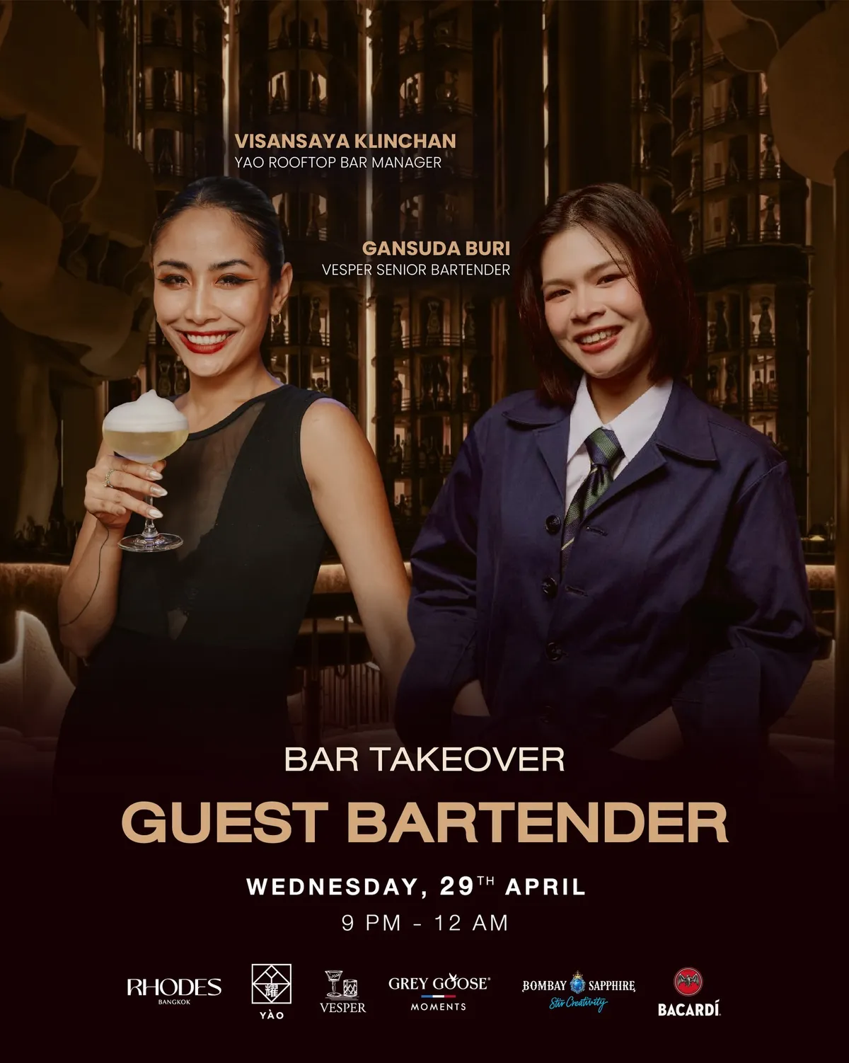 Guest Bartender Night featuring Visansaya Klinchan, Bar Manager of Yao Rooftop Bar, and Gansuda Buri (Earn), Senior Bartender at Vesper.